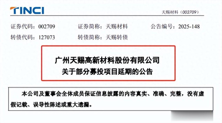 对此,天赐材料表示,目前项目处于车间建设及部分设备安装阶段,因考虑设备采购及到货周期时间较长,经公司及项目组的审慎评估,做出延期的决定。公司已设置专项工作组加强项目管理,定期跟踪进度并优化资源配置等,以多维度保障延期后按期完成。