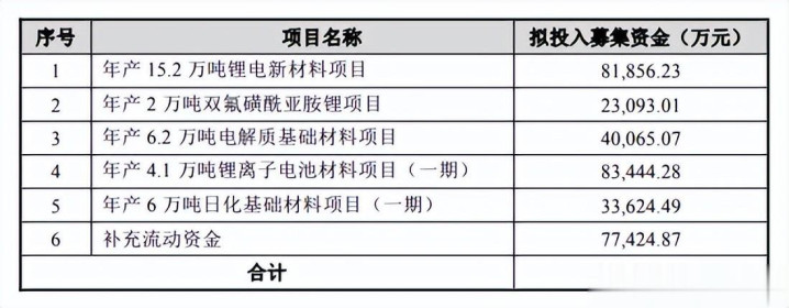 其中有4个募投项目已全部结项并将节余资金补充至流动资金;延期项目“年产4.1万吨锂离子电池材料项目(一期)”总投资93485.15万元,计划投入募集资金83444.28万元。